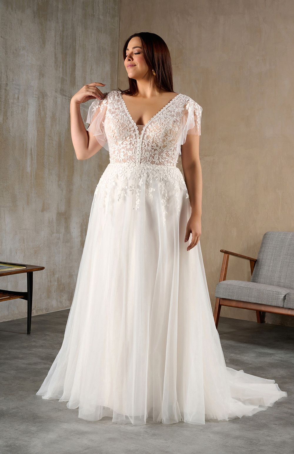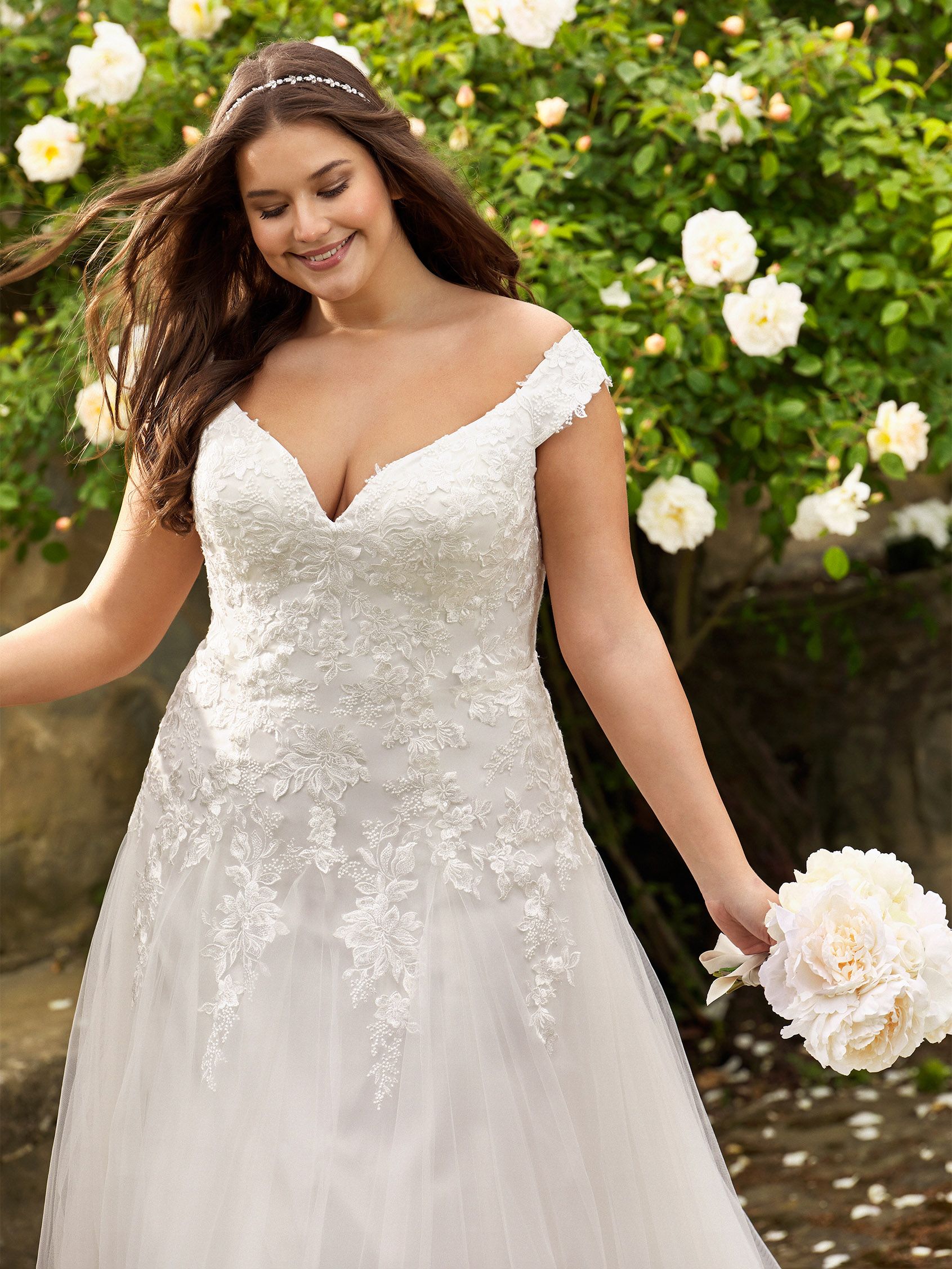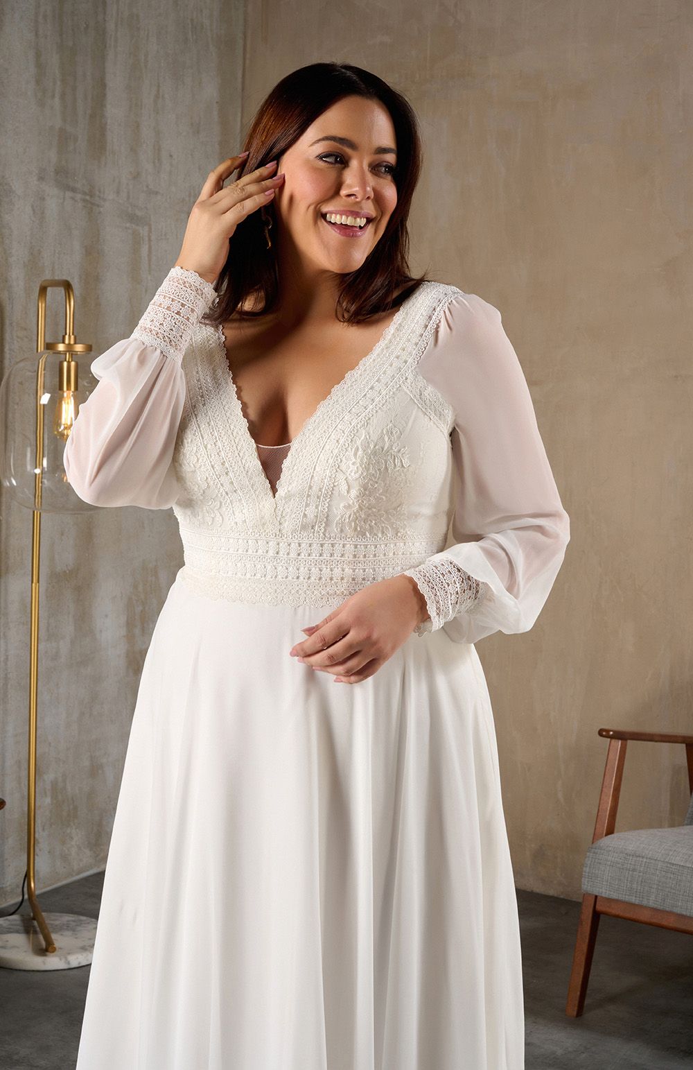 Vous trouverez en boutique des robes de mariée adaptées pour votre essayage en grande taille.