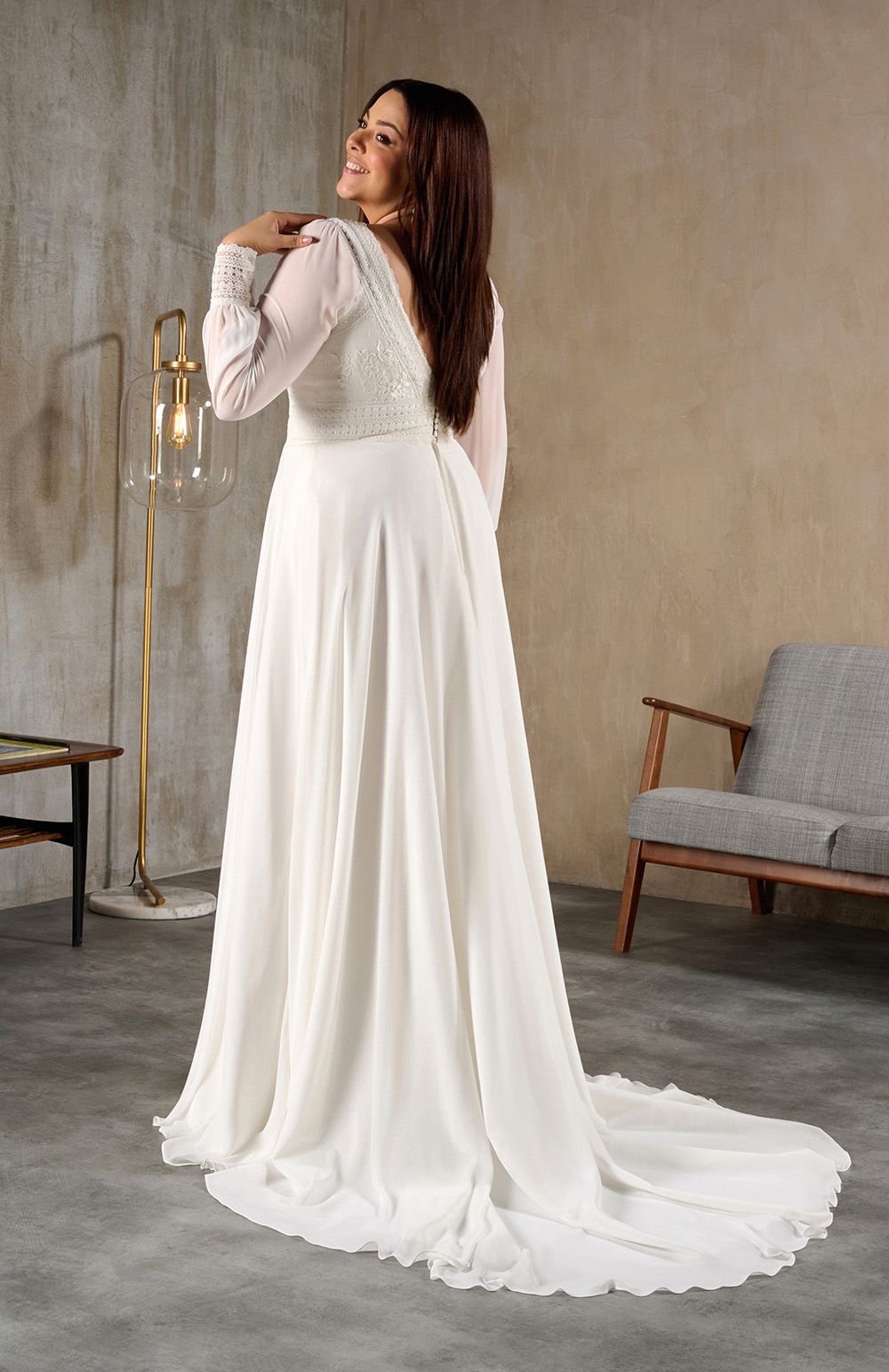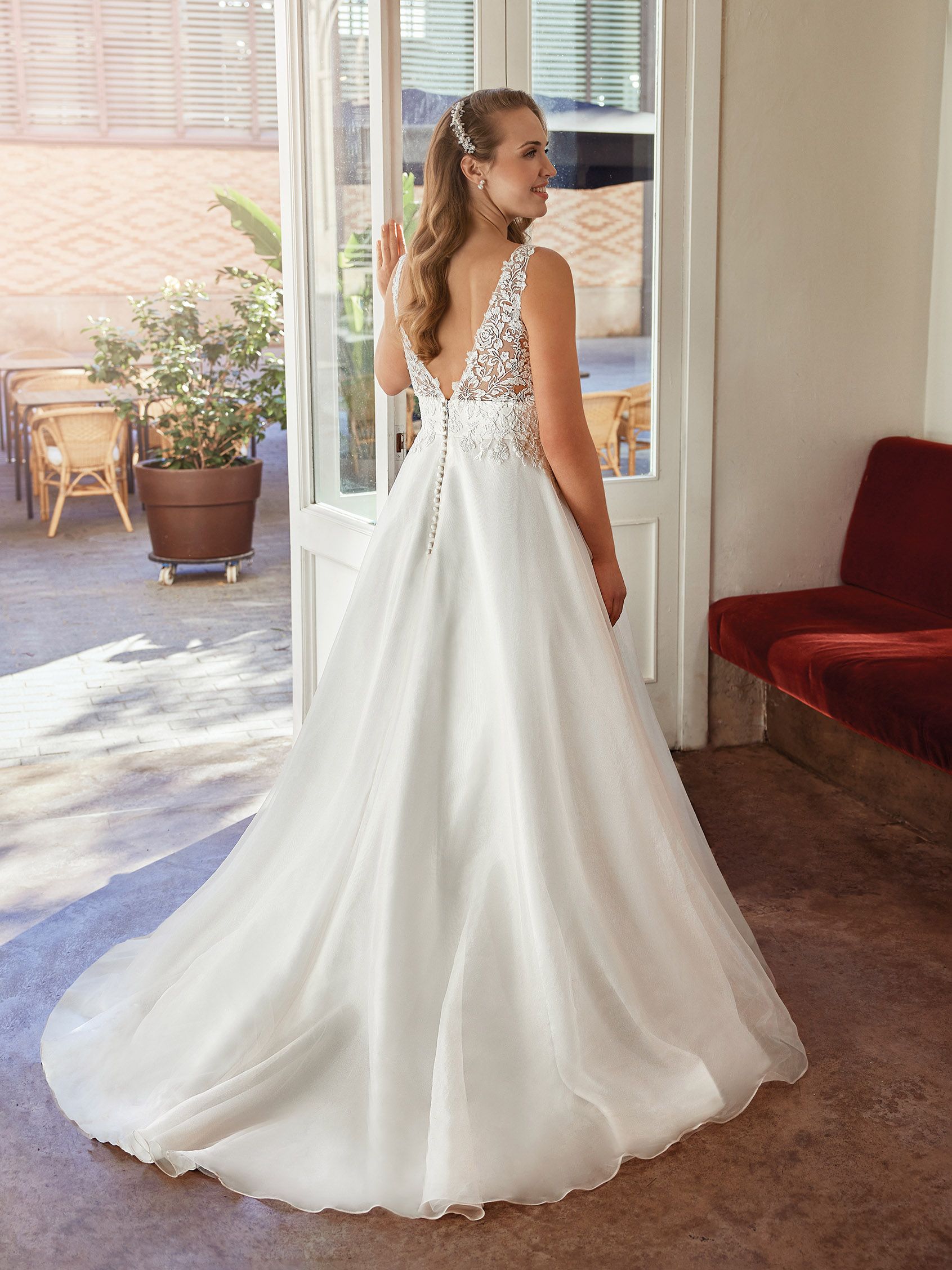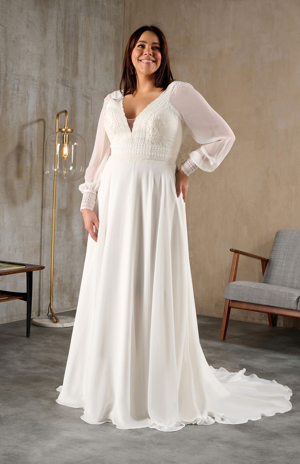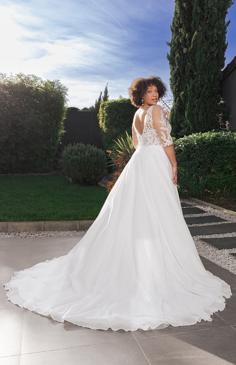 Vous trouverez en boutique des robes de mariée adaptées pour votre essayage en grande taille.