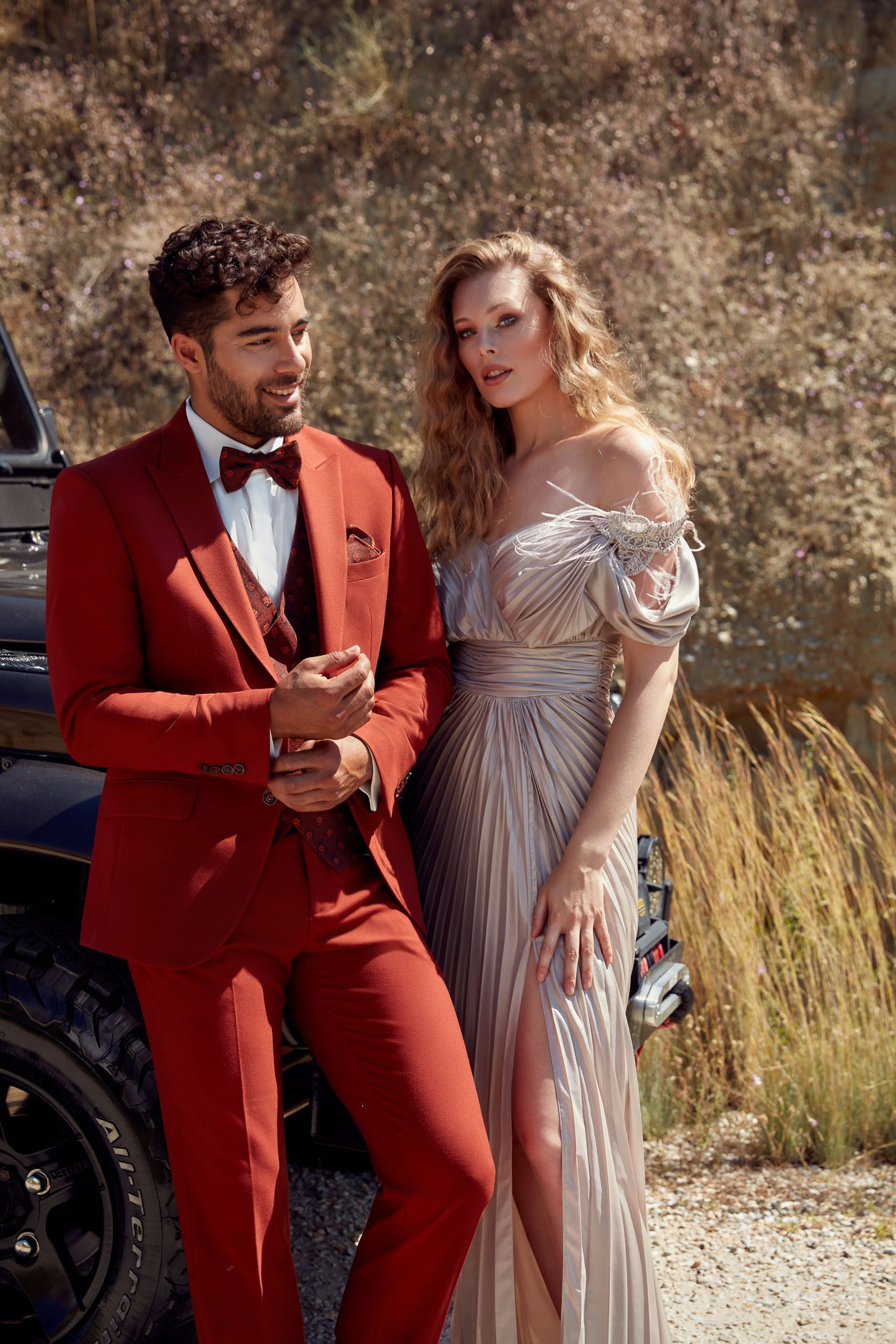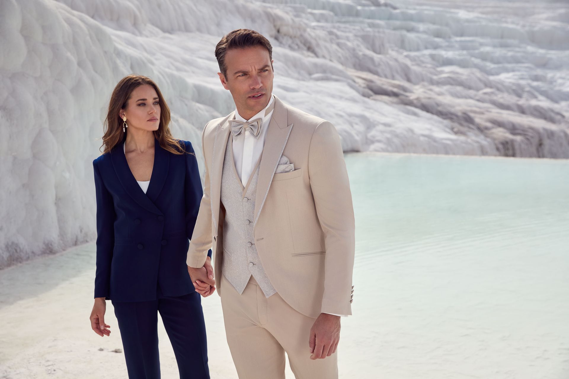 Une collection pour les invités : ensemble pantalon, veste, nœud papillon et chemise à 500€ dans une multitude de couleurs !